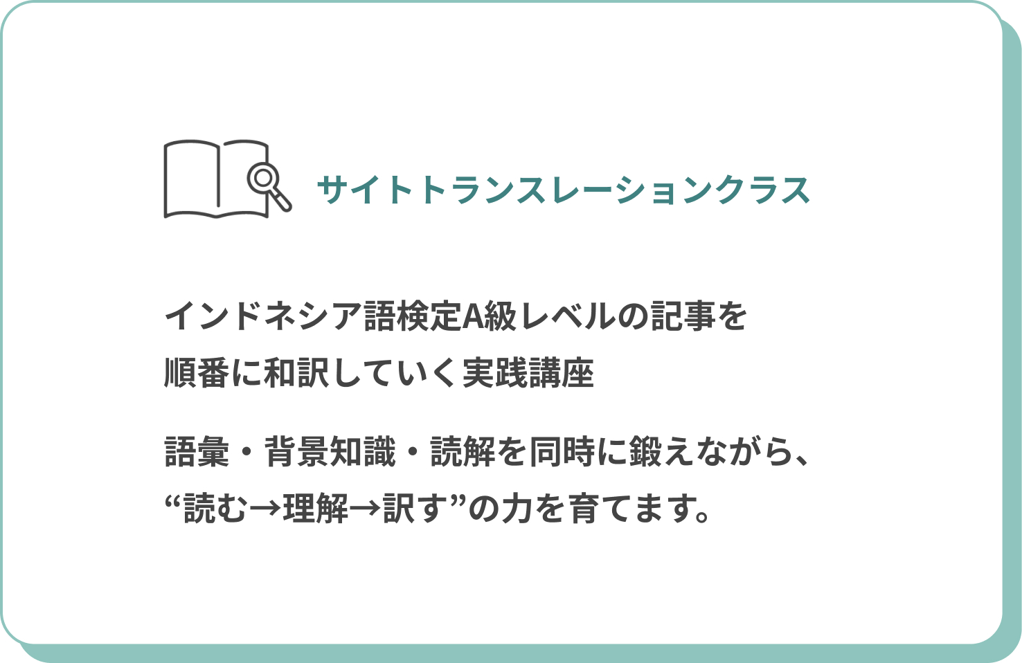 サイトトランスレーション(注1)中心のレッスンで、語学・語彙力・表現力を一段階上のレベルへ。